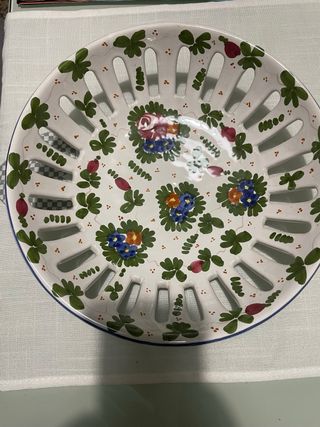 Bellissimo centrotavola in ceramica di Castelli, finemente decorato a mano con motivi floreali. - Ceramica di alta qualità. - Decorazioni floreali colorate. - Bordo rifinito con un sottile profilo blu.