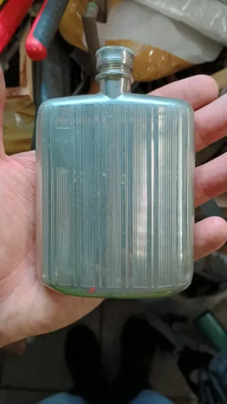 Elegante fiaschetta in metallo con finitura rigata, prodotta in Inghilterra. Un accessorio classico e raffinato. - Design rigato verticale. - Materiale metallico resistente. - Fabbricata in Inghilterra.