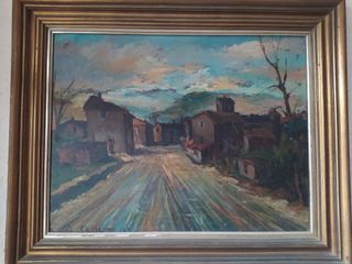 Dipinto originale di Amleto Cencioni pittore aquilano scomparso, L'opera è incorniciata e pronta per essere esposta. pittura ad olio raffigurante Bazzano (AQ). cm 54 x 40 - Firma dell'artista visibile. - Anno di realizzazione: 1965.