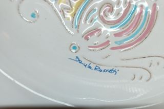 Il posacenere artigianale, in ceramica, dipinto a mano da Daniela Rossetti di Ceramed ha un diametro di 16.5 cm e un altezza di 4 cm