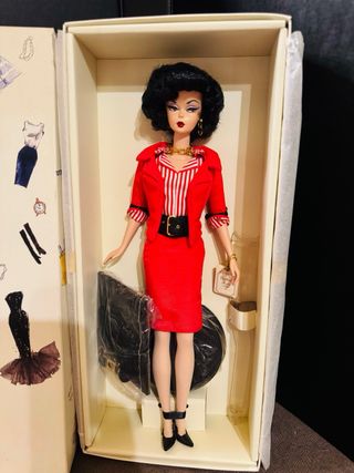 Bellissima bambola Barbie Silkstone Fashion Designer, in ottime condizioni. - Indossa un completo elegante: cappotto rosso, gonna e blusa. - Accessori inclusi: borsa e forbici. - Perfetta per collezionisti. Completa di piedistallo in plexiglas di alta qualità