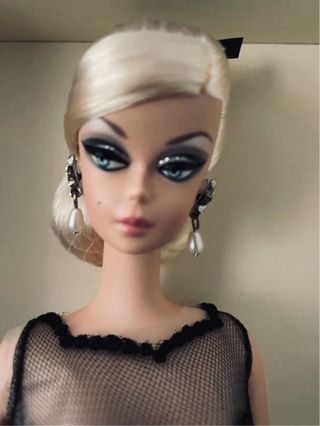 Bellissima bambola Barbie Silkstone con un elegante abito da cocktail. - Vestito lungo in pizzo nero. - Accessori inclusi. - Ottime condizioni.