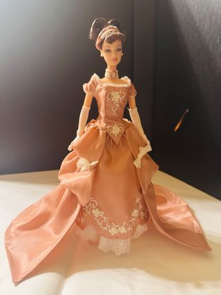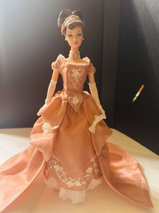 Bellissima bambola Barbie Wedgwood, edizione speciale dedicata all'Inghilterra. La bambola è in ottime condizioni ed è vestita con un elegante abito color pesca. Come la vedete in foto completa di gioielli e scarpe, senza scatola ma in ottime condizioni bambola tenuta lontano da luci solari e luci artificiali, non è stata mai utilizzata per far giocare i bambini.  - Abito lungo in stile antico - Accessori inclusi - Perfetta per collezionisti