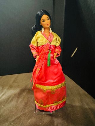 Bellissima bambola Barbie indossante un tradizionale abito coreano. Un pezzo unico per collezionisti! - Bambola Barbie in ottime condizioni. - Abito coreano dettagliato e colorato. - Perfetta per collezionisti di Barbie o amanti della cultura coreana.