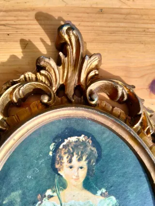 Quadretto vintage barocco con dipinto 28x16
