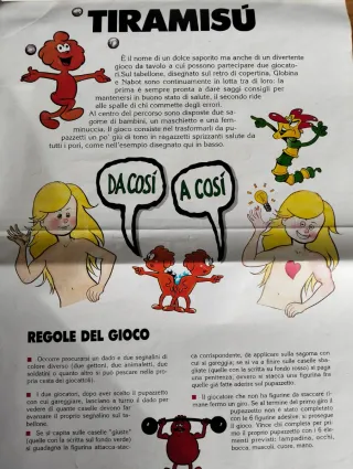 Album di figurine vintage Esplorando il Corpo Umano. - Copertina con illustrazioni colorate. - Contiene la dicitura In diretta dal cartone animato 'Siamo fatti così'. - Prezzo originale L. 1.500. - Include il gioco Tiramisù da completare (attacca e stacca).