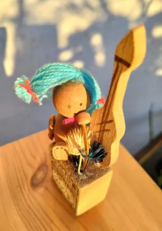 Statuetta musicista legno vintage anni 70 folk