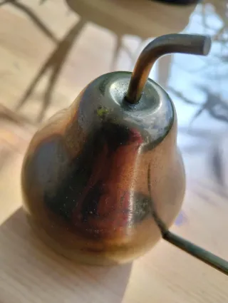 Zuccheriera vintage a forma di pera in ottone anni 60 Completa del suo cucchiaino originale Nessuna ammaccatura, ma con patina naturale del tempo, anche sul cucchiaino #vintage #zuccheriera #ottone #anni70 #modernariato #spaceage #midcentury #design #fruitdecor #collezionismo #retro