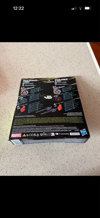 Set di Beyblade X con personaggi Marvel. - Beyblade Miles Morales 1-60GN - Beyblade Green Goblin 9-80HT - Età consigliata: 8+