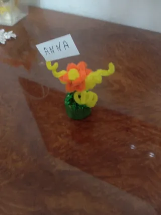 Delizioso segnaposto fatto a mano a forma di fiore. - Realizzato con materiali colorati. - Perfetto per aggiungere un tocco personale alla tavola.