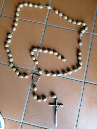 Rosario da muro realizzato in legno di ulivo - Perline ovali in legno. - Crocifisso in legno. - Targhetta centrale in legno.