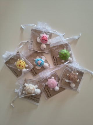 Tartarughe in gesso ceramico profumato, ideali come profuma biancheria. Disponibili in vari colori e profumazioni. NON ACQUISTATE ma contattatemi per scegliere. Il prezzo si riferisce ad UNA tartaruga, ma sono previsti sconti sulla quantità. Misura: 7x5. Confezionate singolarmente in un sacchetto di organza. Realizzate e dipinte a mano.