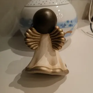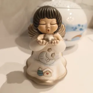 Delizioso angelo Thun della collezione Chiaro di Luna. - Realizzato in ceramica finemente decorata. - Raffigura un angelo con una stella tra le mani. - Presenta dettagli come la luna e le stelle sul vestito. - Base dorata.