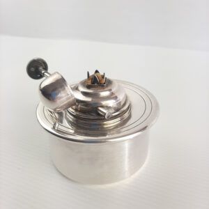 Antico Fornellino a petrolio in in metallo con finitura argentata perido primi 900 Oggetto particolare Dimensioni : diametro base cm. 7 - altezza comlessiva cm. 7 peso 221 grammi ben conservato C00002066-4324 scaldavivande d’epoca