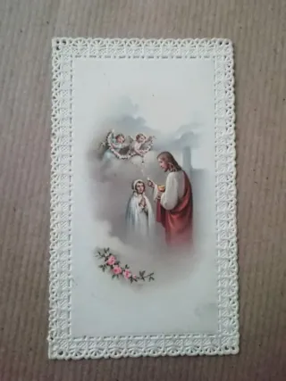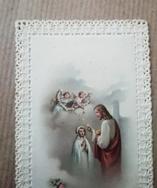 Antica stampa religiosa con merletto