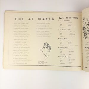 Raro numero unico celebrativo della 15a Fanteria – Compagnia Universitaria, realizzato nel periodo 16 marzo – 15 giugno Anno XIX (1941) e stampato dalla Linotipografia M. Spadafora di Salerno. Il volume, di grande formato (35 × 25 cm), consta di 58 pagine più copertina ed è legato con cordoncino originale. La pubblicazione raccoglie testi celebrativi, componimenti poetici, illustrazioni, ritratti fotografici e schede dei militari appartenenti all’unità, costituendo una preziosa testimonianza della vita militare universitaria italiana nel pieno della Seconda guerra mondiale. C00004462-805