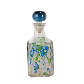 Bottiglia con tappo sferico in vetro decorata dipinta a mano motivi floreali - vintage Ben conservata Altezza complessiva cm. 24 base cm. 10 X 10 C00002194-803