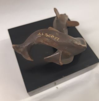 Scultura coppia di delfini in bronzo su base nera. Firmati Alberti Dimensione base cm. 9x9 Altezza complessiva con scultura cm. 11 condizioni come da foto C00006028-803