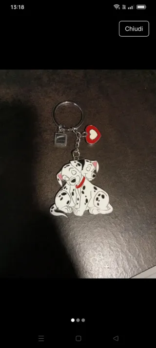 Portachiavi Thun con due cagnolini dalmata e un ciondolo a forma di cuore. - Ciondolo a forma di cuore rosso. - Due cagnolini dalmata stilizzati. - Charm quadrato con logo Thun.