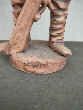 Scultura in terracotta di un uomo con cappello e un fucile. - Realizzata da Falvo Rogliano. - Dettagli curati nel volto e nell'abbigliamento Altezza cm 31