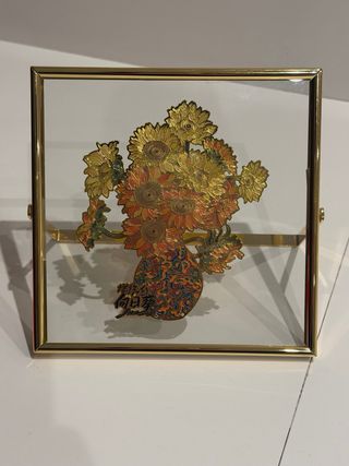 Elegante quadro decorativo con un motivo di girasoli in stile cinese. La cornice dorata aggiunge un tocco di raffinatezza. - Motivo floreale di girasoli. - Cornice in metallo dorato. - Design ispirato all'arte cinese.