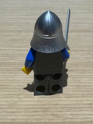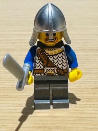 Cavaliere medievale LEGO nuovo, mai utilizzato. Minifigura del cavaliere della collezione Castle Fantasy. - Elmo argentato. - Armatura dettagliata con corona. - Braccia e gambe grigie. Lego Knight Fantasy Era Crown Soldier Scale Mail Minifigure Sword 6193 Castle