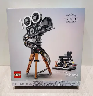 Set di costruzione LEGO Camera Omaggio a Walt Disney. Nuovo, sigillato - Include 811 pezzi. Progettato per adulti dai 18 anni in su. Rappresenta una cinepresa vintage con pellicola. Include figure di personaggi Disney. Non negoziabile
