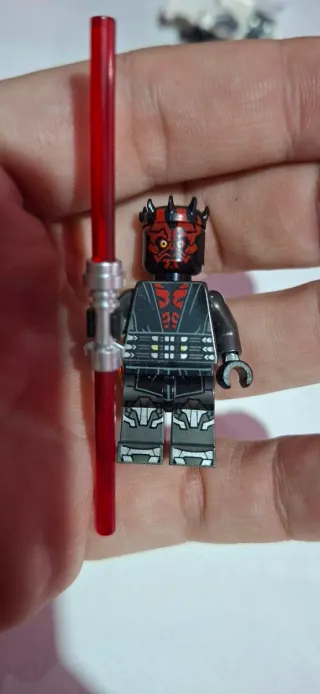 Figura originale Lego Star Wars del personaggio Darth Maul. Include spada laser rossa. Design dettagliato del personaggio.