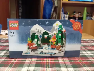 Set LEGO 40564 a tema natalizio. - Ambientazione invernale con montagne innevate. - Include personaggi elfi e un scoiattolo. - Decorazioni natalizie come alberi e luci.