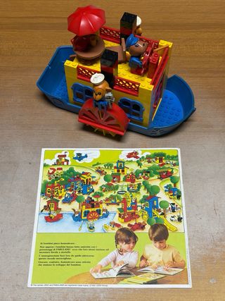 LEGO Fabuland 3673 Battello a vapore – vintage anni ’80 – completo con istruzioni Set originale LEGO Fabuland n. 3673, storico battello a vapore, produzione anni ’80. Dettagli set: Linea: Fabuland Codice set: 3673 Battello con ruota a pale funzionante Minifigure/figure Fabuland incluse Colori vivaci e pezzi iconici dell’epoca Dotazione: Set montato Libretto originale presente IN OTTIME CONDIZIONI (come da foto) Scatola non presente Condizioni: Buone condizioni generali da vintage Normali segni del tempo compatibili con l’età Pezzi visivamente integri (vedi foto per i dettagli)