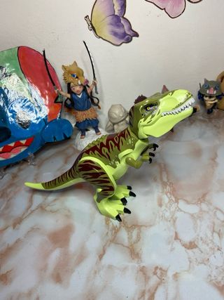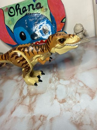 LEGO T-Rex inclusa nel set LEGO Jurassic World Trasporto del T. rex (codice articolo 75933). Identificazione: Questa specifica figura di Tirannosauro Rex presenta un corpo marrone chiaro con strisce marrone scuro. Set di Appartenenza: Era l'elemento principale del set LEGO Jurassic World 75933, rilasciato originariamente nel 2018. Caratteristiche: Il dinosauro è altamente snodabile, con mascelle apribili, testa e coda mobili, braccia e gambe articolate che consentono diverse pose per il gioco o l'esposizione. In ottime condizioni, per informazioni contattatemi 😊