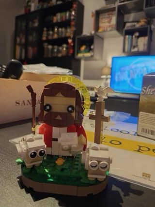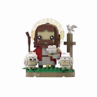 Set di costruzioni a tema religioso con figura di Gesù, pecorelle e colomba. Attenzione: La foto del Gesù già montato è solo a scopo dimostrativo. Il set che vendo è ancora nuovo nel suo sacchetto sigillato come visibile nelle ultime foto. - 277 pezzi inclusi. - Design in stile chibi o kawaii. - Include base verde e elementi decorativi. - Non si tratta di un set del marchio Lego