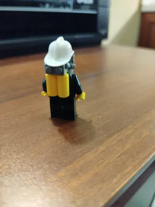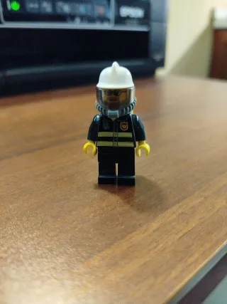 Personaggio Lego CTY0165, un pompiere con casco e maschera. - Casco bianco. - Divisa nera con strisce gialle. - Dettagli del logo sul petto. Bellissimo come da foto visto e piaciuto