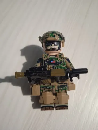 Minifigure di un soldato Marines USA, compatibile con mattoncini Lego. - Dettagli accurati sull'equipaggiamento. - Design ispirato alle forze speciali americane.