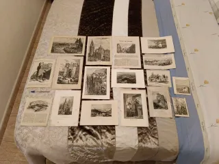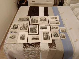 Set di fogli di libri con incisioni di città del XIX secolo. Dettagli illustrativi di architettura e paesaggi urbani. Pezzi storici per collezionisti. Granada, Toledo, Madrid, Burgos, Segovia, Malaga, Ibiza, Vitoria, Valencia, Sorrento e Siviglia. Lo stato è quello che si vede nelle foto. Credo siano fogli strappati da libri tedeschi del XIX secolo.