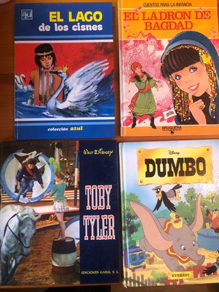 Lote di quattro libri per bambini anni 70/80 - Il Lago dei Cigni (Collezione Blu) - Il Ladro di Bagdad (Racconti per l'Infanzia) - Toby Tyler (Walt Disney) - Dumbo (Disney Everest) Articoli perfettamente conservati quasi da collezionista. Racconti per bambini vintage