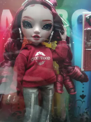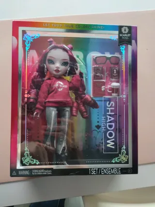 Bambola della collezione Rainbow High, modello Scarlet Rose. Viene nella sua confezione originale. Include accessori come occhiali, libri e tazza. La bambola indossa un abito alla moda. Attenzione: contiene pezzi piccoli, non adatto a bambini sotto i 3 anni.