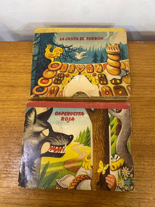 Set di due libri antichi con illustrazioni pieghevoli. Con difetti, strappi e usura - La Casita de Turrón - Caperucita Roja