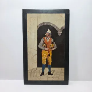 Antico Commesso Di Pietre Dure Fiorentino Fine XIX - Uomo Anziano Con Bottiglie Di Vino. L' intarsio é eseguito su marmo nero del belgio e presenta diverse pietre dure e semidure come lapis malachite graniti e vari marmi. Raffigura nel centro un uomo che regge due anfore di vino all'interno di una stanza. Il commesso é eseguito con grande finezza nei minimi particolari e presenta un buon livello di definizione. Miaure 25.5 x 15.5 x 0.8 cm Ca. Peso 767 g. Spedizione con corriere espresso ed imballo curato Keyword: antiquariato libro antico libri rari manoscritto limitata prima edizione scultura statua busto bronzo marmo ce