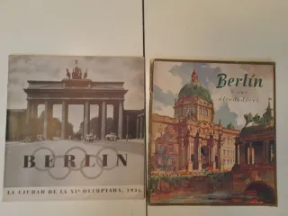 2 libri rari in spagnolo, pre WW2 - libretto dei Giochi Olimpici di Berlino, la città delle Olimpiadi del 1936. Pubblicato in spagnolo a Berlino dalla commissione di propaganda degli XI Giochi Olimpici del 1936, 51 pagine. Include un programma di dette Olimpiadi. - Guida di Berlino e dintorni in spagnolo, di 96 pagine. Pubblicato prima della guerra. Questo libro è stato venduto dopo la guerra perché include una nota (vedi foto) che fa riferimento al fatto che il testo non corrisponde più alla realtà. Il prezzo è per il lotto