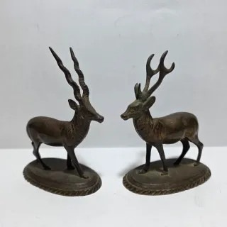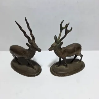 Due antiche sculture in bronzo di cervo e antilope