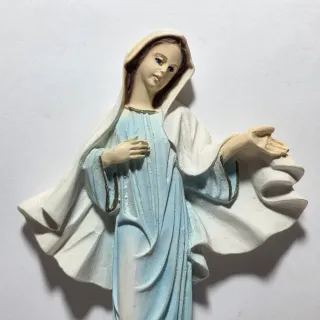 Acquasantiera raffigurante la Madonna di Medjugorje, in resina. Si trova in buone condizioni, lievi segni del tempo. Misure: 22,4 x 11 x 5 cm circa antiquariato libro antico libri rari manoscritto limitata prima edizione scultura statua busto bronzo marmo ceramica dipinto quadro pittura arte antica olio su tela telaio cornice dorata legno intagliato mobili antichi armadio specchiera originale raro collezione restaurato autentico decorazione d'epoca antiquités livre ancien livres rares manuscrit édition limitée première sculpture statue buste marbre céramique tableau peinture huile sur toile cadre doré bois sculpté meubles anciens