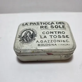 Vecchia scatola di latta La Pasticca del Re Sole contro la tosse. Si trova in discrete condizioni, la carta attorno è andata via e presenta molti segni di usura. Misure: 9,2 x 6,5 x h 3,2 cm circa antiquariato libro antico libri rari manoscritto limitata prima edizione scultura statua busto bronzo marmo ceramica dipinto quadro pittura arte antica olio su tela telaio cornice dorata legno intagliato mobili antichi armadio specchiera originale raro collezione restaurato autentico decorazione d'epoca antiquités livre ancien livres rares manuscrit édition limitée première sculpture statue buste marbre céramique tableau peinture hui