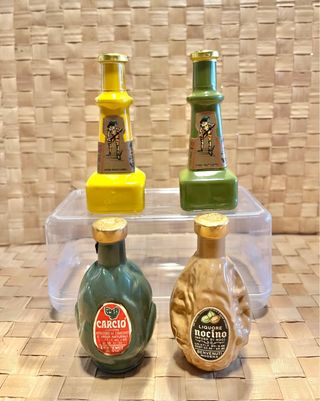 Alcolici e liquori mignon vintage non edibili probabilmente essendo di 50-80 anni fa diverse marche da collezione 3 euro l'uno, se ne prendete più pezzi applico sconto