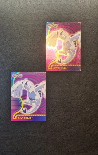 Vendo coppia di carte originali Pokémon della serie Topps TV Animation Edition (Serie 3 / Johto), anno 2001. Le carte sono in lingua ITALIANA e raffigurano il leggendario Lugia (#249). Il lotto comprende: Lugia #249 FOIL (Olografica): Versione rara brillante con trama a vortice tipica delle Topps. Lugia #249 REGULAR: Versione classica non olografica. Guarda bene le foto se hai ulteriori dubbi chiedi pure prima di procedere #pokemon #lugia #topps #vintage #nintendo #collezionismo #johto #foil #cartepokemon