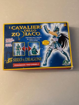 Personaggio di Sirio il Dragone della serie I Cavalieri dello Zodiaco. - Personaggio completamente articolato. - Armature metalliche. - Trasforma Sirio il Dragone nel simbolo della sua costellazione. - Originale dalla serie TV.