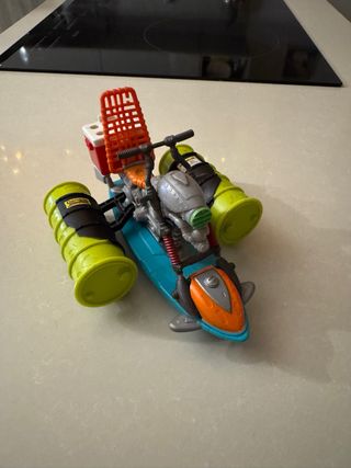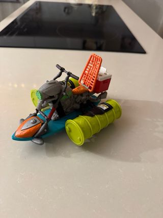 Moto d'acqua a tema Tartarughe Ninja, risalente al 2012. Presenta un design colorato con dettagli ispirati ai personaggi. - Colore principale: blu e arancione. - Dettagli in verde lime e grigio. - Include un cestino rosso sul retro.