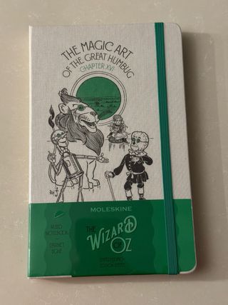 Taccuino Moleskine in edizione limitata dedicato a Il Mago di Oz. - Copertina rigida con design ispirato al libro. - Pagine a righe. - Elastico di chiusura verde. - The Magic Art of the Great Humbug Chapter XVI.