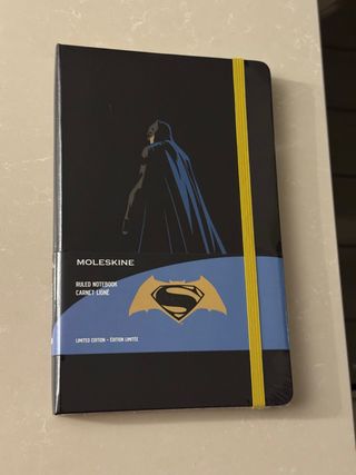 Taccuino Moleskine a righe, edizione limitata dedicata a Batman e Superman edizione limitata. - Copertina nera con grafica ispirata ai supereroi. - Elastico giallo per chiusura. - Logo Superman stilizzato.