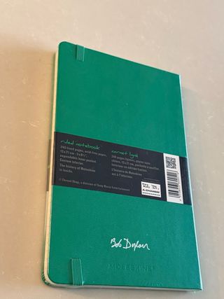 Taccuino Moleskine in edizione limitata dedicato a Bob Dylan. Le pagine sono a righe. - Copertina rigida verde. - Elastico di chiusura. - Design ispirato a Bob Dylan.